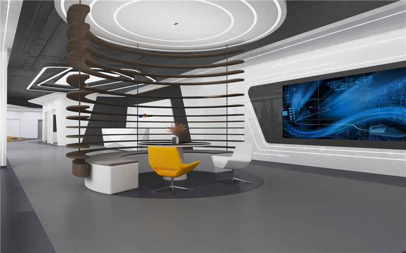 4)比較不常見的吊頂設計方式叫光棚式天花。光棚式天花是天花在某部分或全部用木或金屬作圖案框架,在架上放置透光片,在棚架上排布日光燈,燈光通過燈片的散射形成整個棚通亮,如同天窗透光的天花造型,通過透光的效果,產生較高的心理空間,給人以高于實際尺度的空間感,但同時造價也較高,不夠節(jié)能,所以這類設計方式在實際辦公樓裝修運用中并不常見。